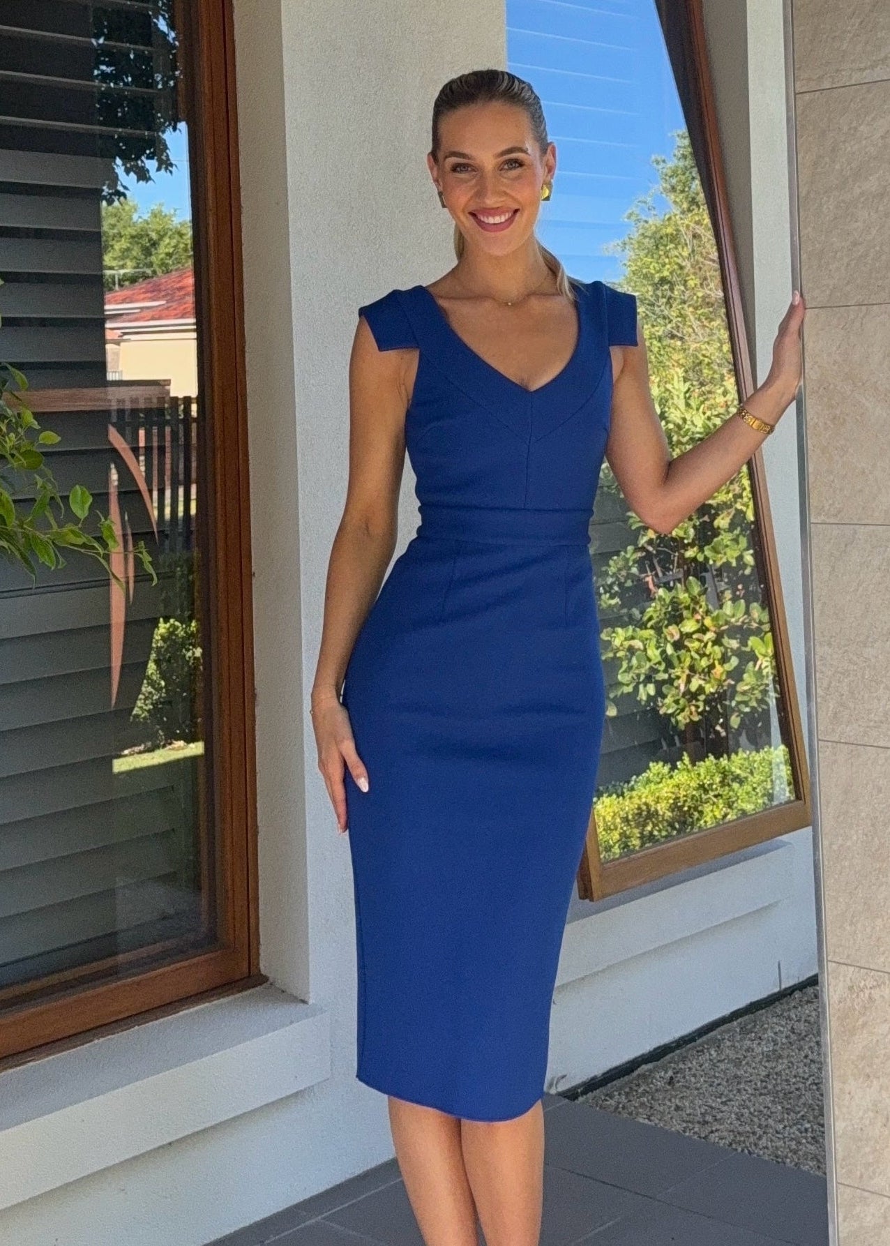 Royal Blue Sheath Double Crepe Midi